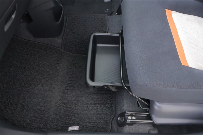 助手席の下にはシューズボックスが隠れています。運転用の靴などを常に入れておくことが出来ます!脱いだ靴も足元に置かなくて済むので車内がスッキリ♪