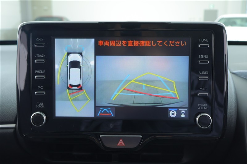 パノラミックビューモニター付きです。車両を上から見たような映像をディスプレイオーディオ画面に表示。運転席からの目視だけでは見にくい、車両周辺の状況をリアルタイムでしっかり確認できます。
