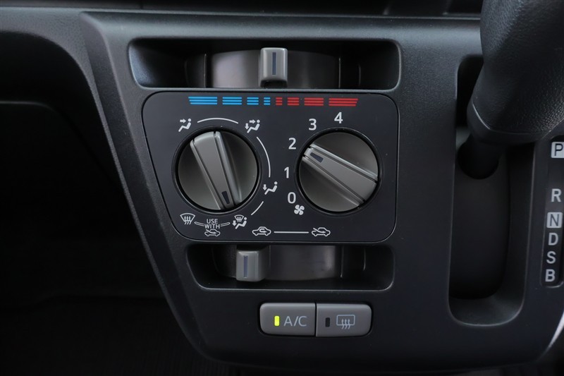 マニュアルエアコン付き。快適な室内空間でドライブ出来ます。