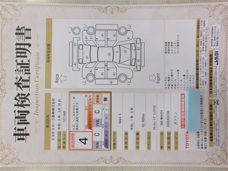 車両検査証明書です!お車の状態を、ありのまま記載しています。車種・グレード・走行距離・内外装の評価などのご参考に♪