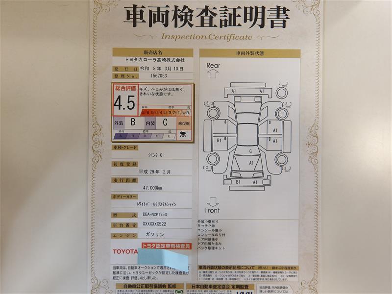 車両検査証明書です!お車の状態を、ありのまま記載しています。車種・グレード・走行距離・内外装の評価などのご参考に♪