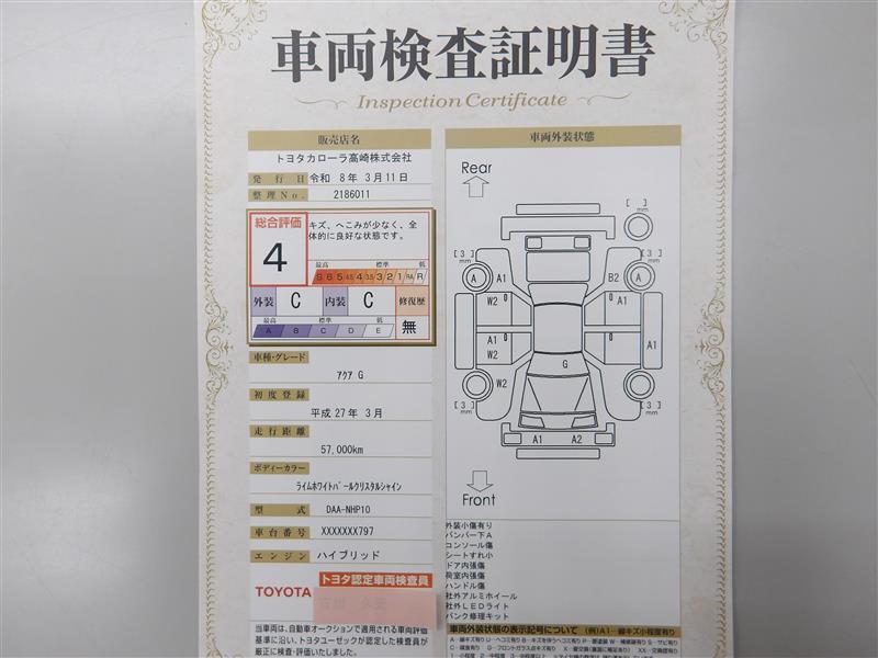車両検査証明書です!お車の状態を、ありのまま記載しています。車種・グレード・走行距離・内外装の評価などのご参考に♪