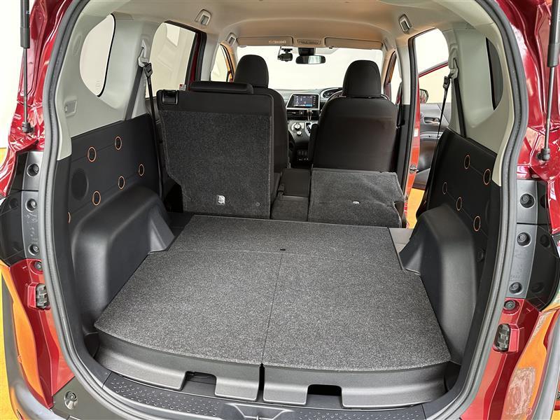 リアシートを倒せば、広々とした荷室空間に♪ お荷物、たっぷり載せられます!ゴルフバッグや長尺物も搭載可能、レジャーにお仕事にお買い物にも便利な広々荷室です(^^)