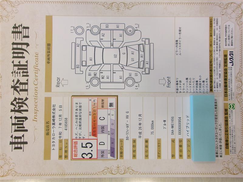 ※ 「定期点検整備なし(要整備箇所あり)」の場合、整備箇所につきましては、販売店へお問い合わせください。