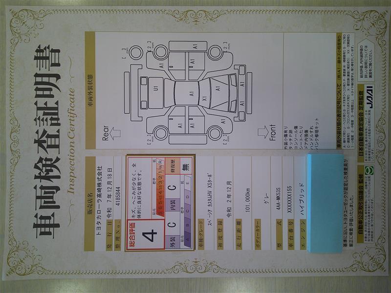 ※ 「定期点検整備なし(要整備箇所あり)」の場合、整備箇所につきましては、販売店へお問い合わせください。