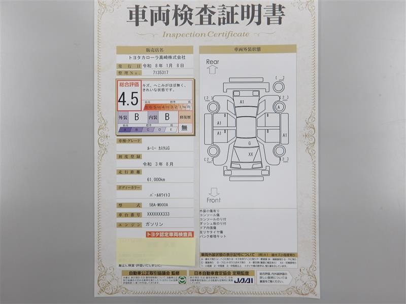 ※ 「修復歴あり」の場合、修復部位の詳細につきましては、販売店へお問い合わせください。