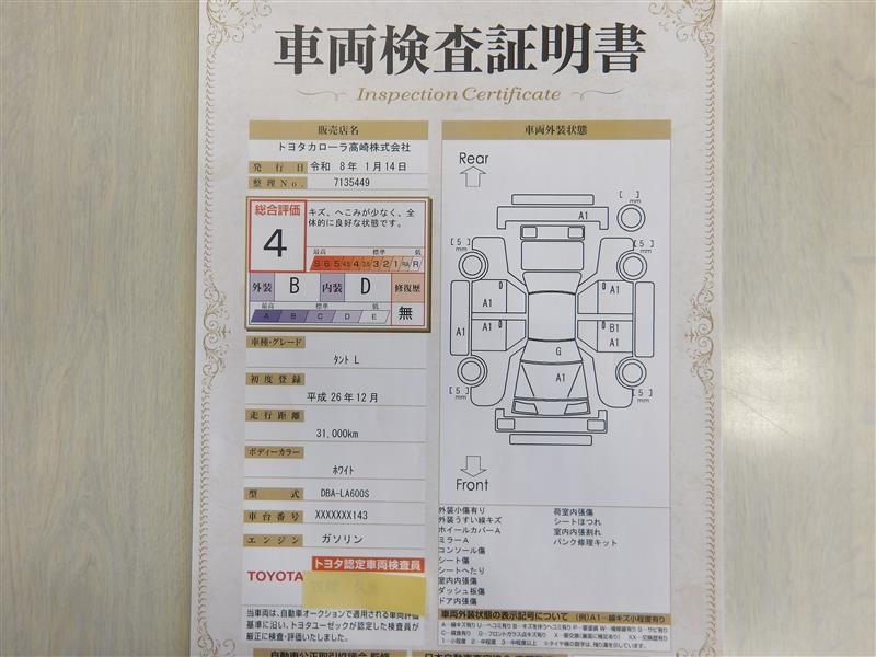 ※ 「定期点検整備なし(要整備箇所あり)」の場合、整備箇所につきましては、販売店へお問い合わせください。