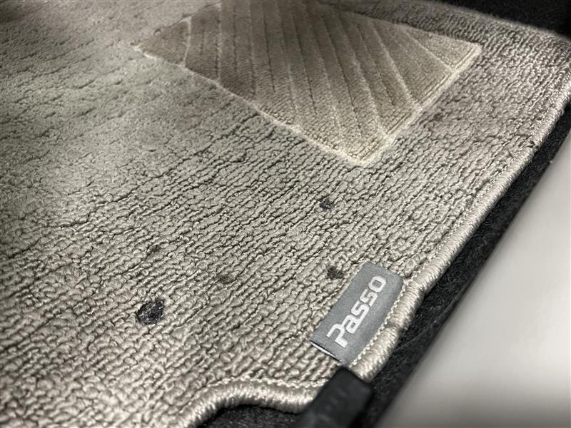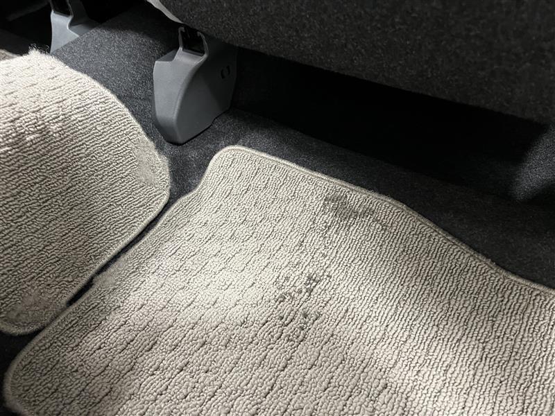 後席フロアマットにシミ汚れがあります。
