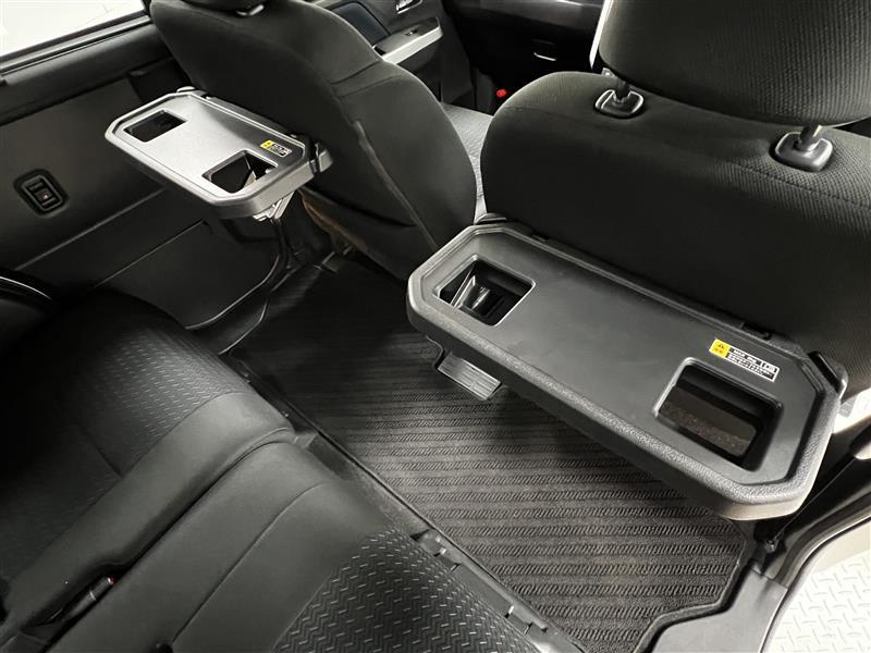 後席の足元は平らで広々!両側にシートバックテーブルがあり、ドリンクなどを置けます!
