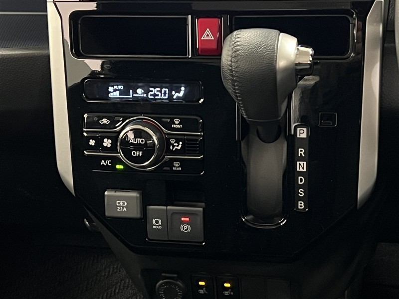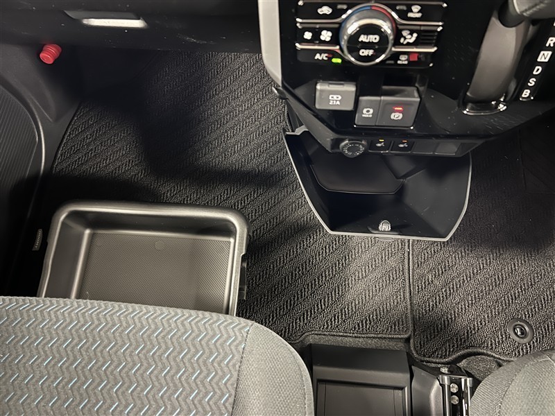シフトレバーとエアコンの操作パネルをインパネに集約して、足元が広く使えるようになっています!電動サイドブレーキにはホールド機能付!