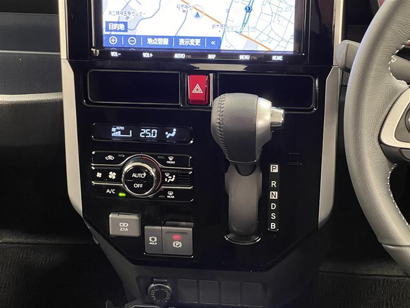 シフトレバーとエアコンの操作パネルをインパネに集約して、足元が広く使えるようになっています!電動サイドブレーキにはホールド機能付!