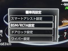 車線変更時などに、ドアミラーでは確認しにくい後側方エリア(ブラインドスポット)に存在する車両をレーダーで検知。警告サインをドアミラー等に表示することで、運転者に注意喚起する機能。