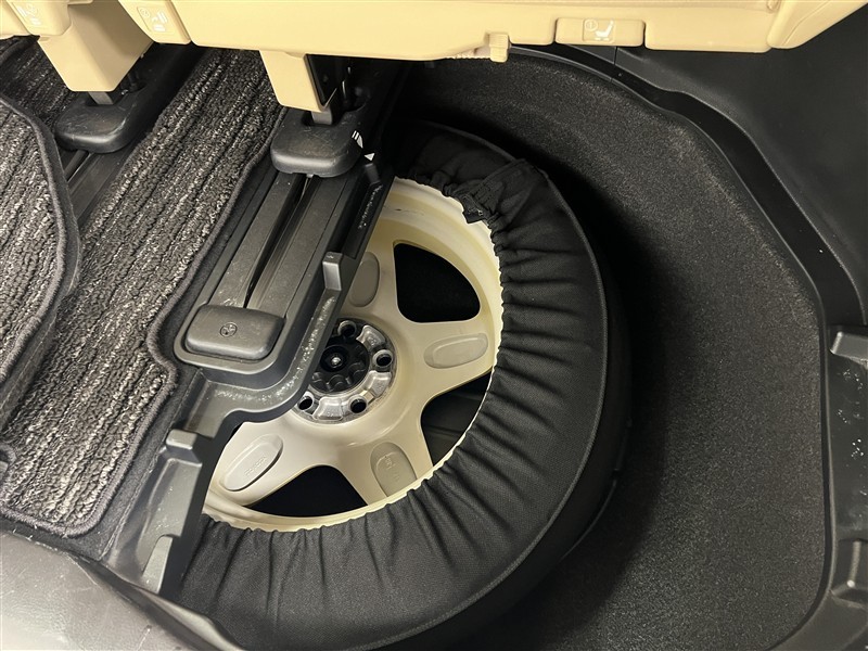 スペアタイヤがついていて、パンクや不測の事態が起きても安心です!
