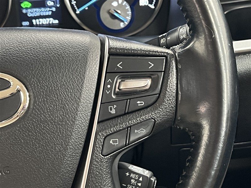 右側のステアリングスイッチではプリクラッシュセーフティや、メーター内のインフォメーションディスプレイの表示切替操作などが出来ます!パノラミックビューモニターの切替スイッチ付!