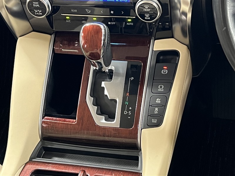 インパネに組み込まれたシフトパターンはゲート式になっています!シーケンシャル操作でマニュアル感覚での走行も可能!電動サイドブレーキにはホールド機能付!