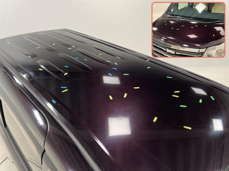 ルーフやボンネットに降雹によるものと思われる大小多数のヘコミあり(マークシールが足りず、複数の色が混ざっています)