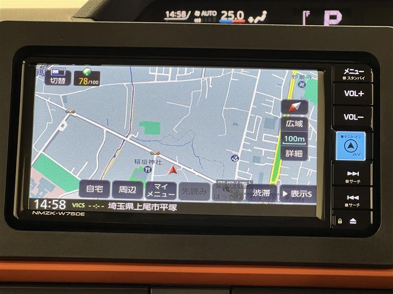 W75DEダイハツ純正7インチメモリーナビ!フルセグTVやブルートゥース、CD、DVD再生、SDがお使いいただけます!