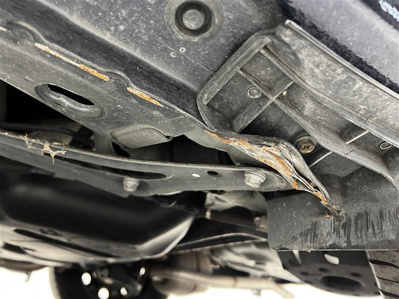左側の下廻り、ロッカーパネル部分に傷、錆があります。