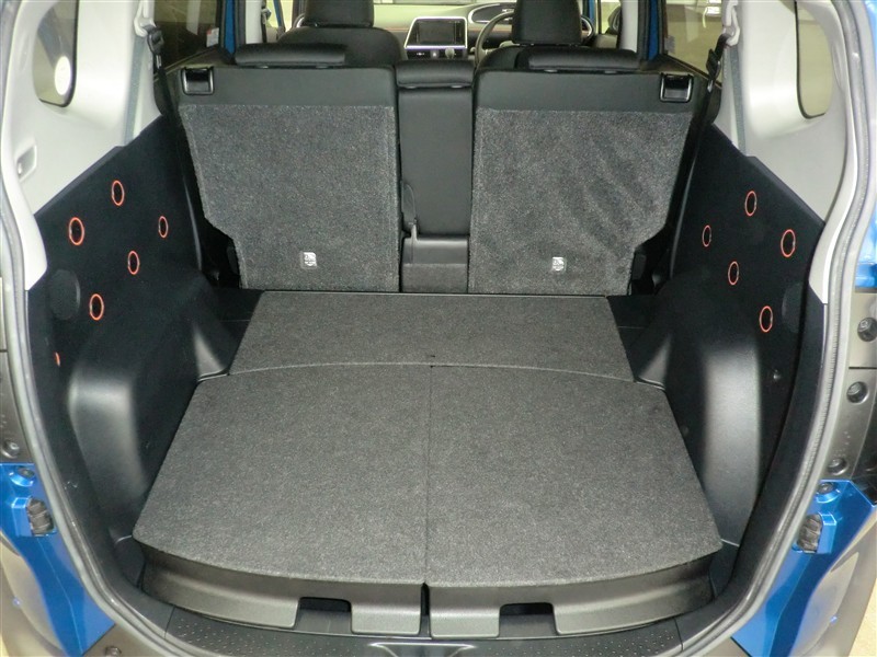 後部座席を倒すと広々とした荷室に早代わり!!大きなものもバッチリ入りますよ!!