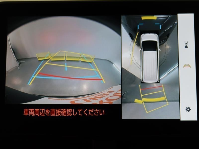パノラミックビューモニター付きです。車両を上から見たような映像をモニター画面に表示。運転席からの目視では見にくい、車両周辺の状況をリアルタイムでしっかり確認できます。