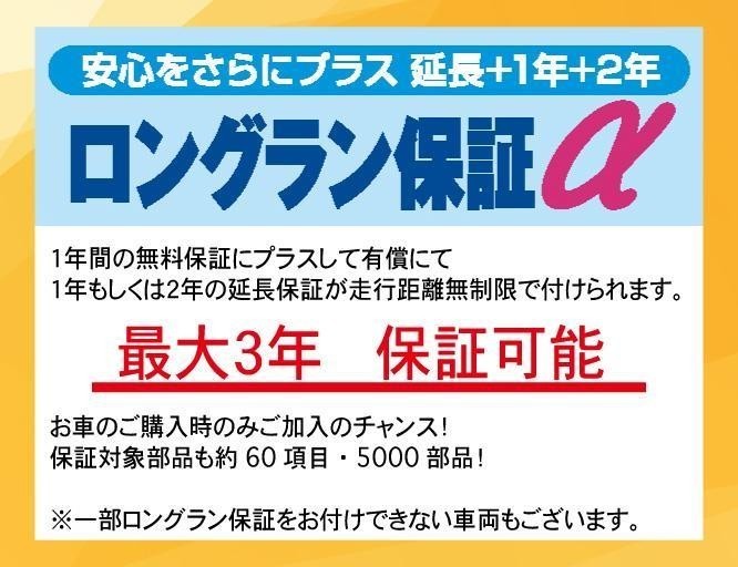 通常のロングラン保証1年に延長保証2年プラスし充実の保証内容に加え、2層のガラス質被膜により、輝き 光沢と滑落性・流水性による高い防汚効果のボディコーティング及び室内の清潔さ快適さを守る為の抗菌防臭コーティング、更にガラス4面に車台番号を刻印して盗難防止に役立つセーフティーコードを施工したセットプランです。