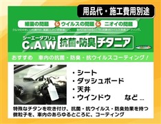 愛車の室内を抗菌・抗ウィルス・防臭コーティングするチタニア(有料)がオススメ!車内を安心・安全・快適に保ちます!詳細は店舗スタッフまでお尋ねください。