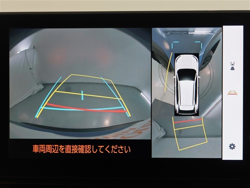 パノラミックビューモニター付きです。車両を上から見たような映像をディスプレイオーディオ画面に表示。運転席からの目視だけでは見にくい、車両周辺の状況をリアルタイムでしっかり確認できます。