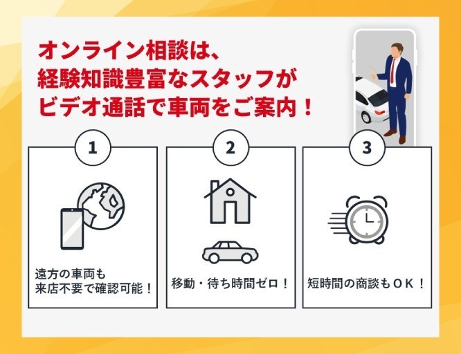 お気になる車両がある際、オンラインにて車両ご案内可能です