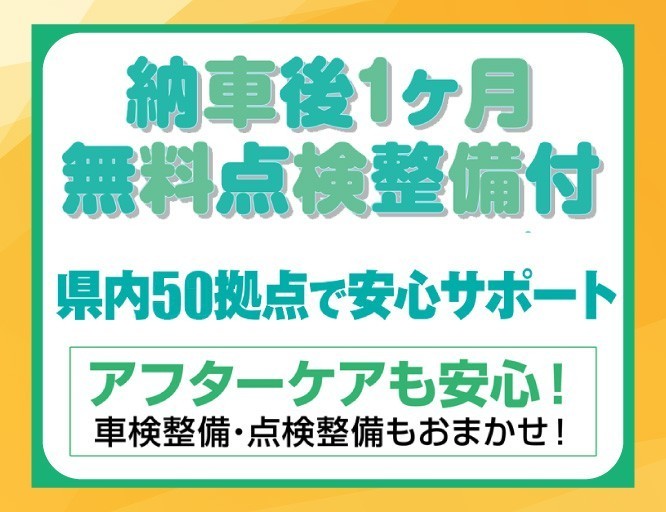 納車1カ月後には無料1カ月点検をご用意しています。車検や12カ月点検、オイル交換などのアフターメンテナンスも県内50店舗の整備工場におまかせください。