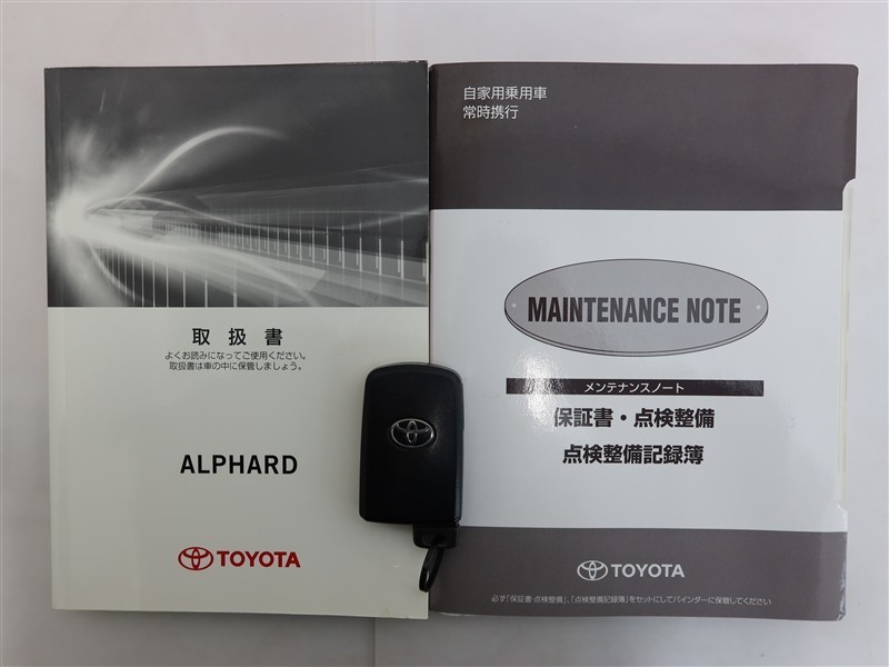 メンテナンスノート、取り扱い説明書、スマートキー。