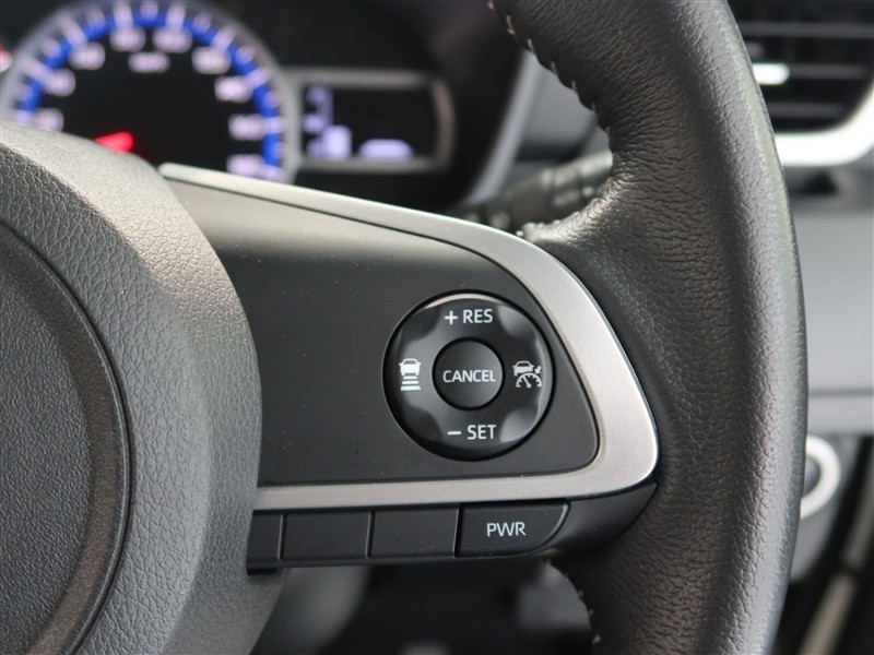 アダプティブクルーズコントロール機能付きです。走行中に先行車の様子を検知しながら、設定した車速の範囲内で先行車との距離のキープを支援します。詳細は販売店スタッフまでおたずねください。