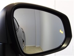 車線変更時などに、ドアミラーでは確認しにくい後側方エリア(ブラインドスポット)に存在する車両をレーダーで検知。警告サインをドアミラー等に表示することで、運転者に注意喚起する機能。