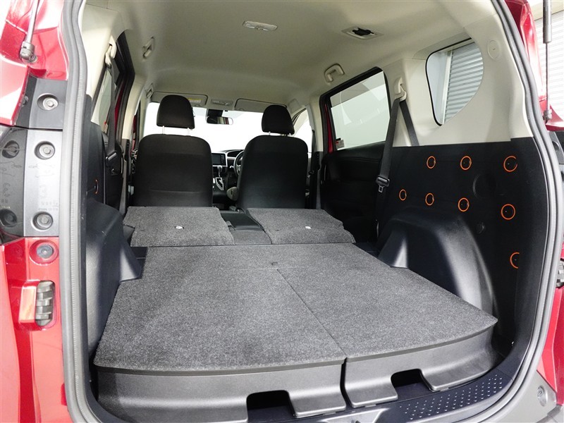 リヤシートは分割可倒式なので、左右のシートを倒せばこんなに広い空間になります