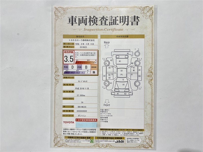 ※ 「定期点検整備なし(要整備箇所あり)」の場合、整備箇所につきましては、販売店へお問い合わせください。