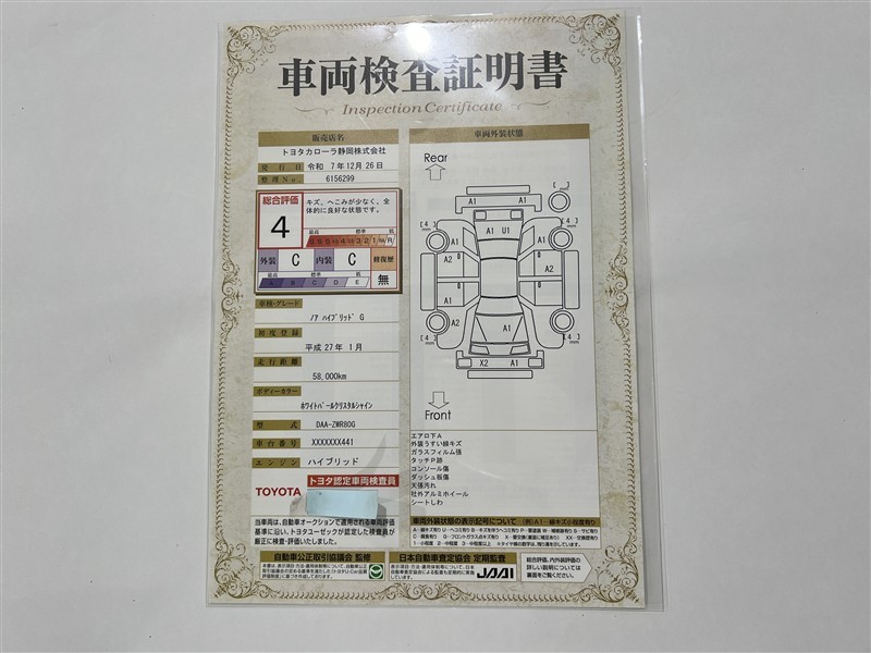 ※ 「修復歴あり」の場合、修復部位の詳細につきましては、販売店へお問い合わせください。