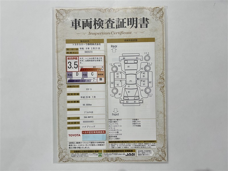 ※ 「定期点検整備なし(要整備箇所あり)」の場合、整備箇所につきましては、販売店へお問い合わせください。