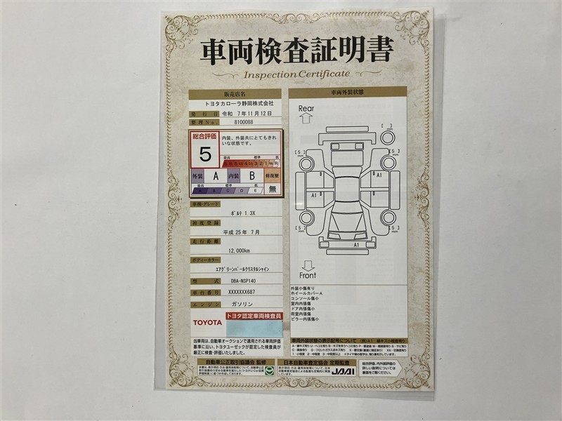※ 「修復歴あり」の場合、修復部位の詳細につきましては、販売店へお問い合わせください。