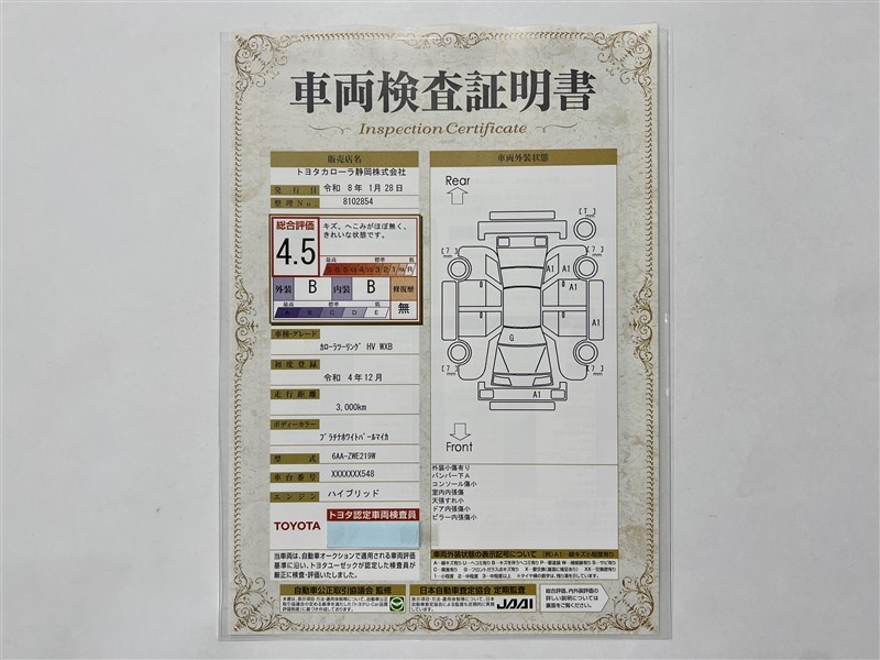 ※ 「修復歴あり」の場合、修復部位の詳細につきましては、販売店へお問い合わせください。