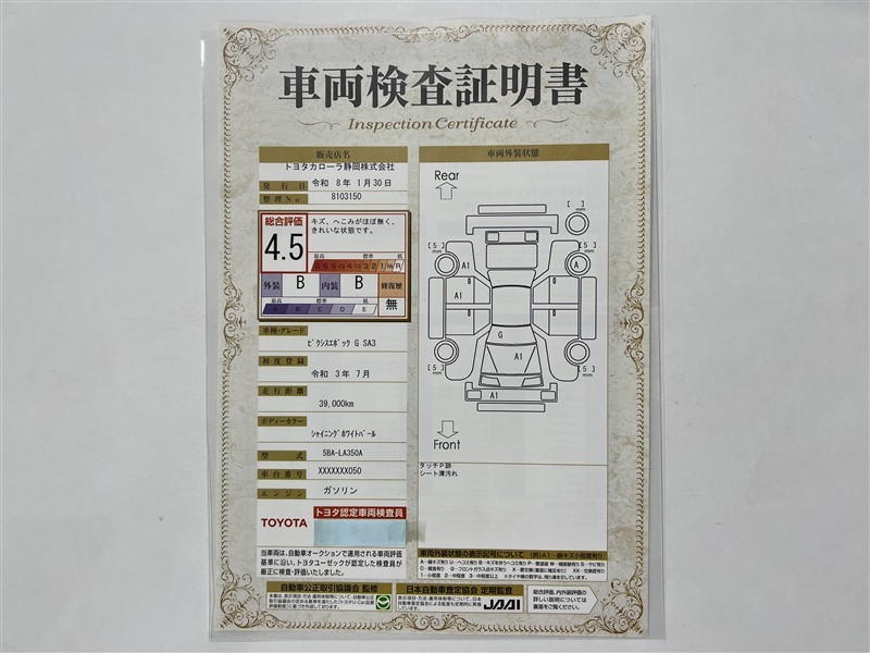 ※ 「定期点検整備なし(要整備箇所あり)」の場合、整備箇所につきましては、販売店へお問い合わせください。