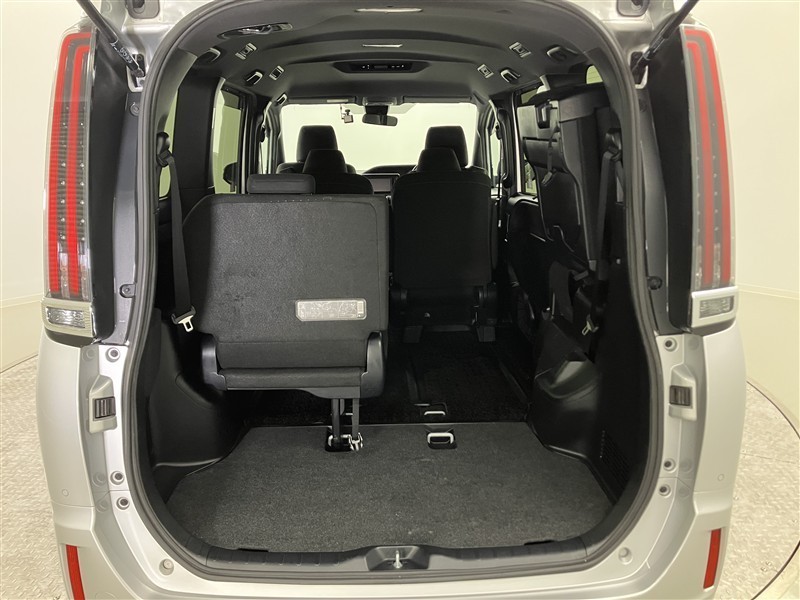 3列目シートは跳ね上げ式で折りたたみ可能です。キャンプ用品など大きな荷物もばっちり収納可能です!