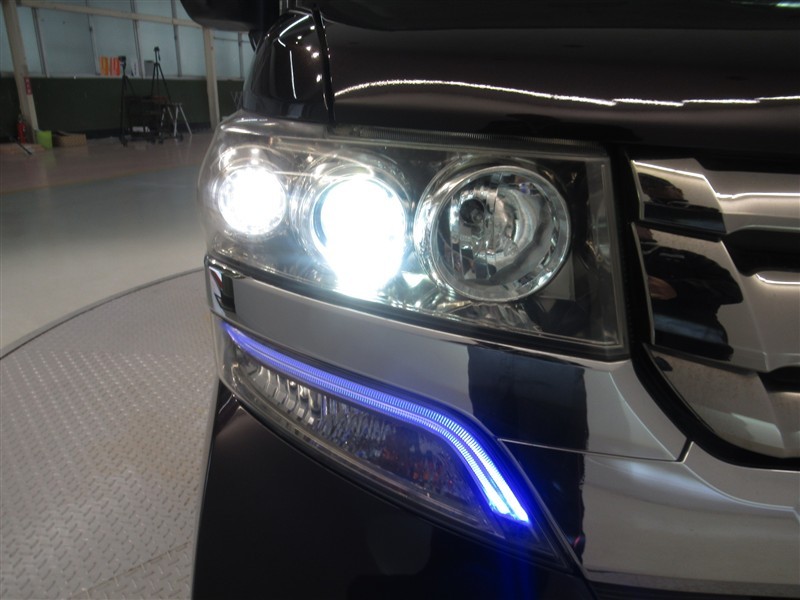 通常のハロゲンヘッドライトと比較すると明るく太陽光に近い発色をします 夜間走行の視界も広くなり視認性もよくなるのではないでしょうか?