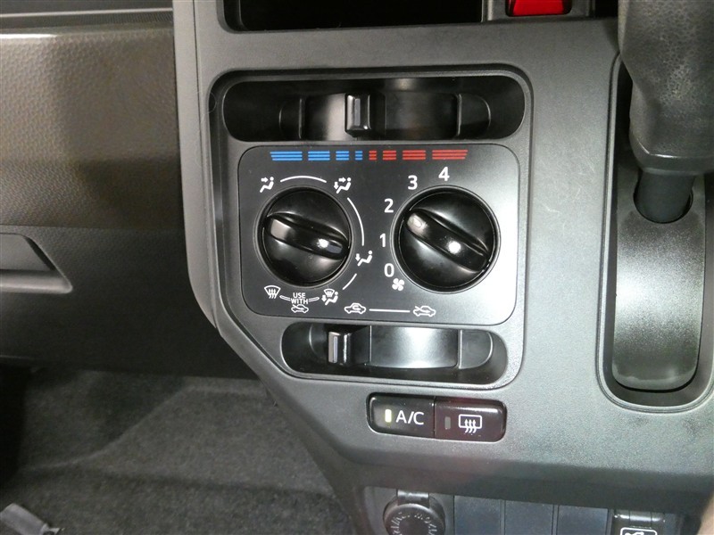 マニュアルエアコンです。温度設定ができます。冷え性の方が乗っても安心ですね♪