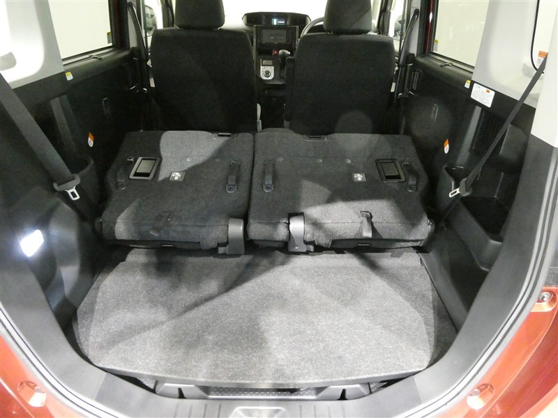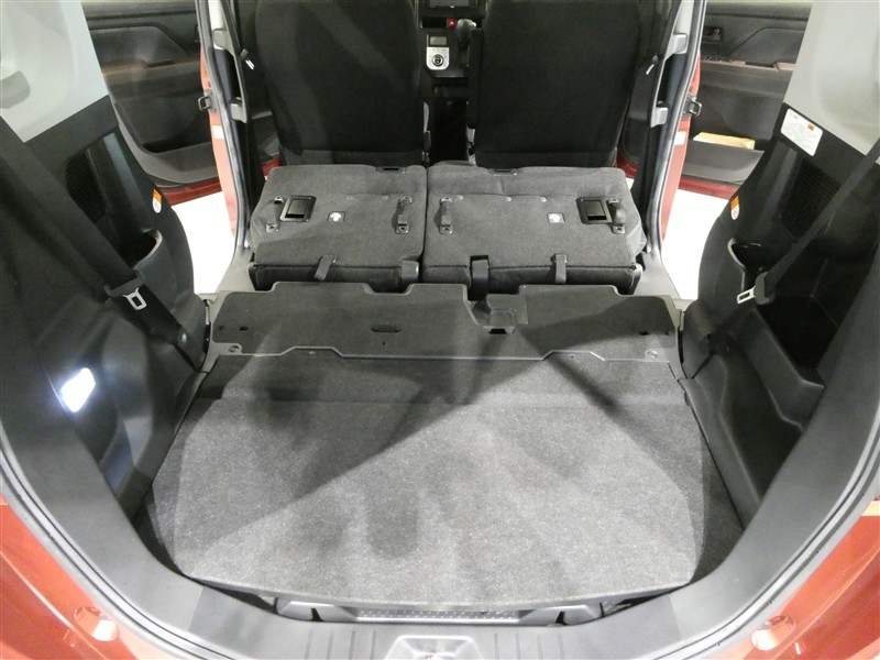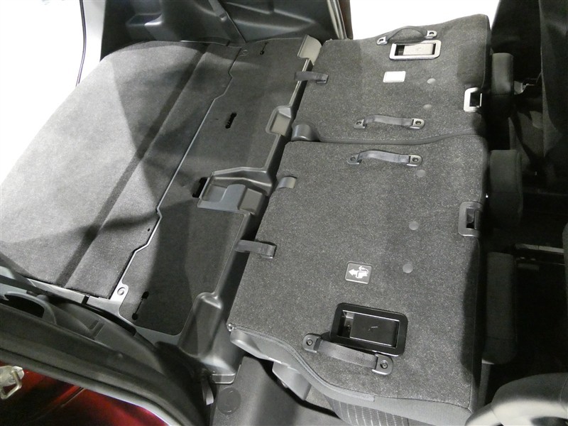 2列目シートは跳ね上げ式で折りたたみ可能です。キャンプ用品など大きな荷物もばっちり収納可能です!