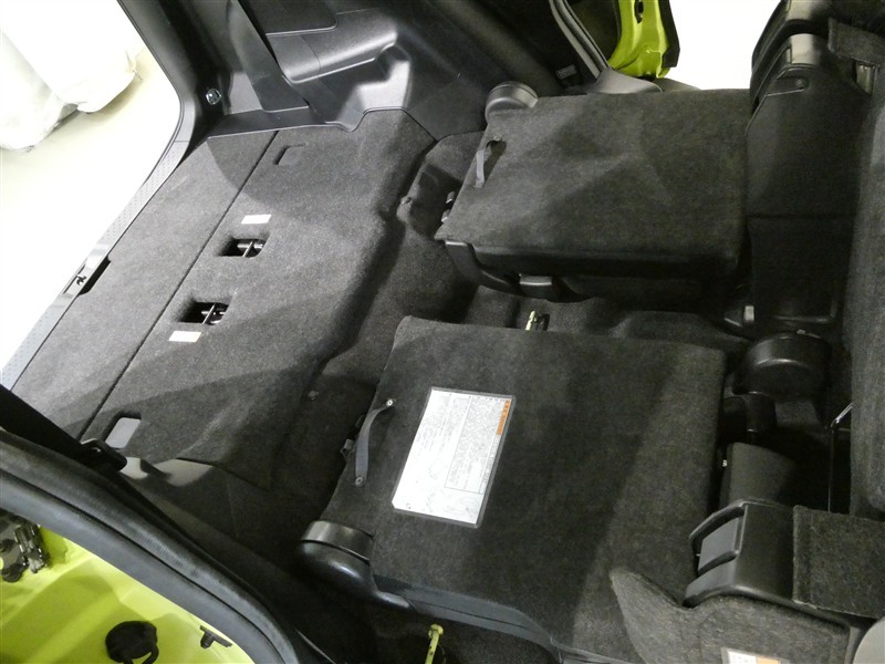 シートは跳ね上げ式で折りたたみ可能です。キャンプ用品など大きな荷物もばっちり収納可能です!
