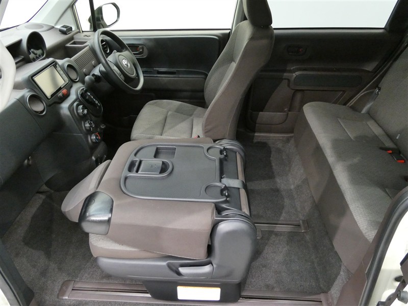 助手席シートを前に倒すとテーブルになります。