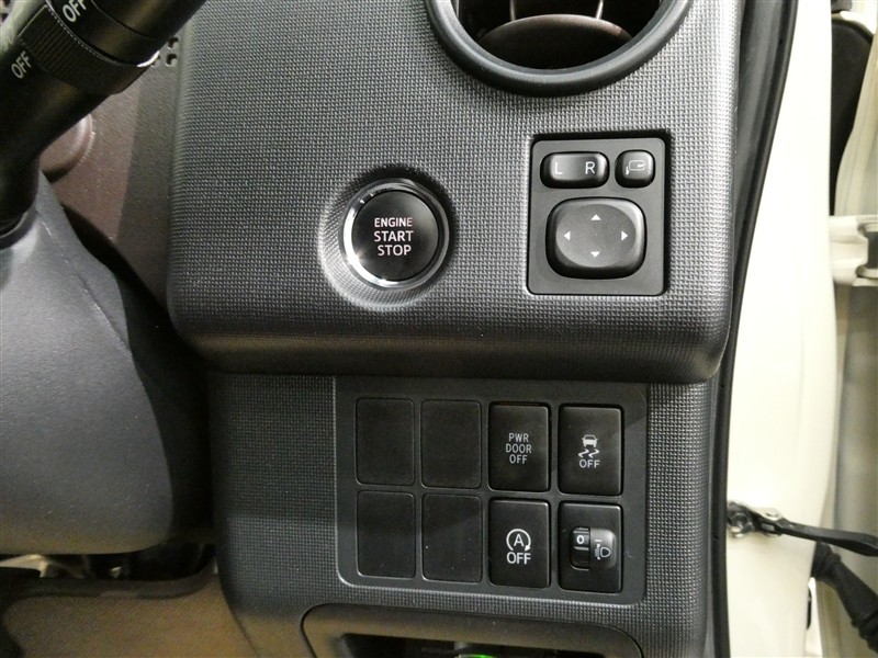 プッシュスタートシステム。エンジンの始動はブレーキを踏んでこのボタンを押すだけ。キーを差したり回す必要もありません。