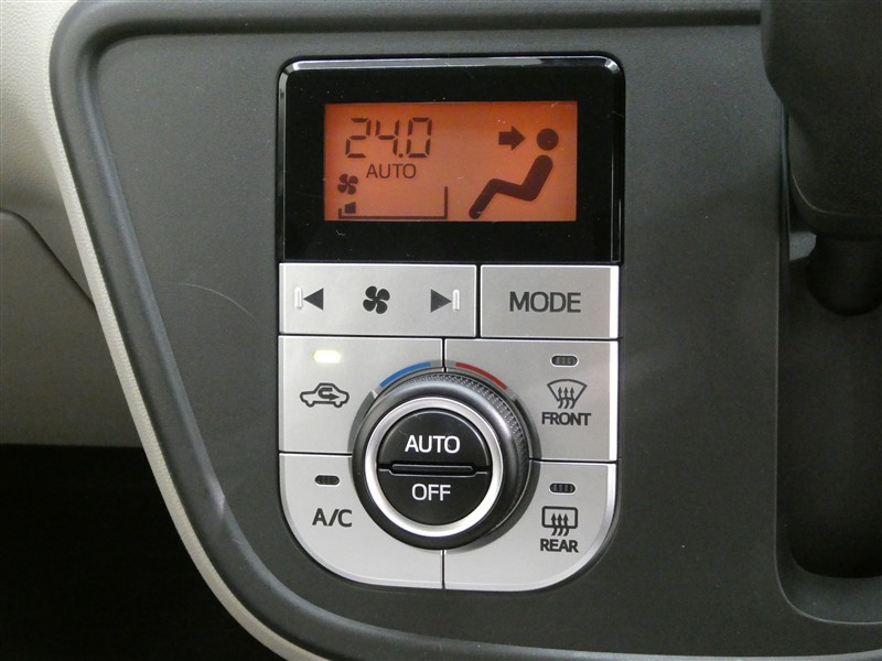 「AUTO」スイッチで車内の温度を一定に保ってくれるオートエアコン 快適装備の代名詞 もちろんマニュアル操作も可能ですよ