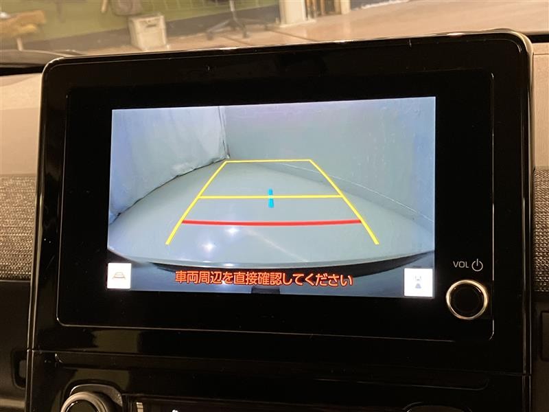 車庫入れなど後進運転時に死角をモニターで確認ができて安全です♪ ステアリング操作の参考になるガイド線も表示しますので車庫入れがニガテな方も安心ですネ!