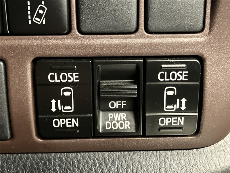 両側のスライドドアが電動開閉するので狭い駐車スペースなどでの乗り降りの際に便利です♪ 操作はワイヤレスリモコン/室内スイッチのどちらからも可能です!