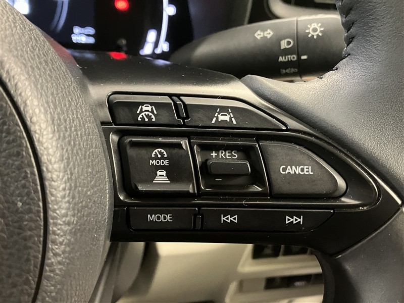 アダプティブクルーズコントロール機能付きです。走行中に先行車の様子を検知しながら、設定した車速の範囲内で先行車との距離のキープを支援します。詳細は販売店スタッフまでおたずねください。